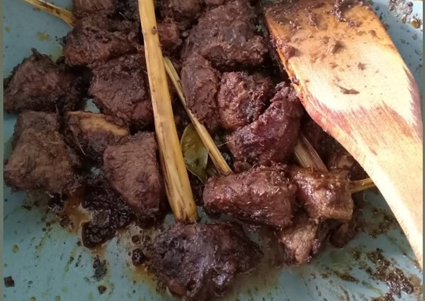 - Masukin daging & sedikit kuah rebusan nya kemudian masukin air rebus sampai mendidih. Terakhir masukin santan. Di perhatikan apinya. Usahakan api nya kecil/sedang. Sering2 diaduk sampai kering.