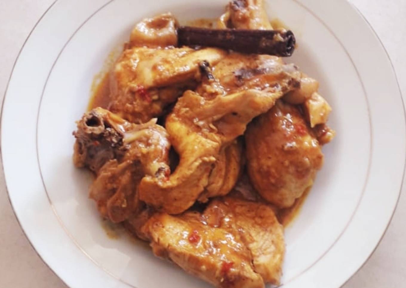 - Tumis bumbu halus tambahkan daun salam, daun jeruk, serai, kayu manis, cengkih, kembang pekak tumis hingga wangi. Masukkan potongan ayam aduk hingga rata lalu tambahkan air aduk kembali hingga rata.