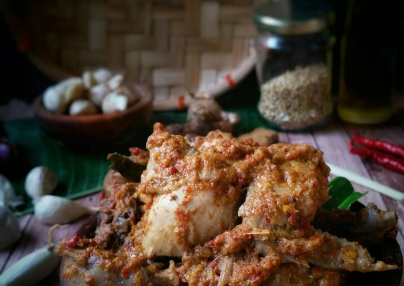 - Setelah berminyak dan kuahnya agak mengental, masukkan ayam dan ati ampela.