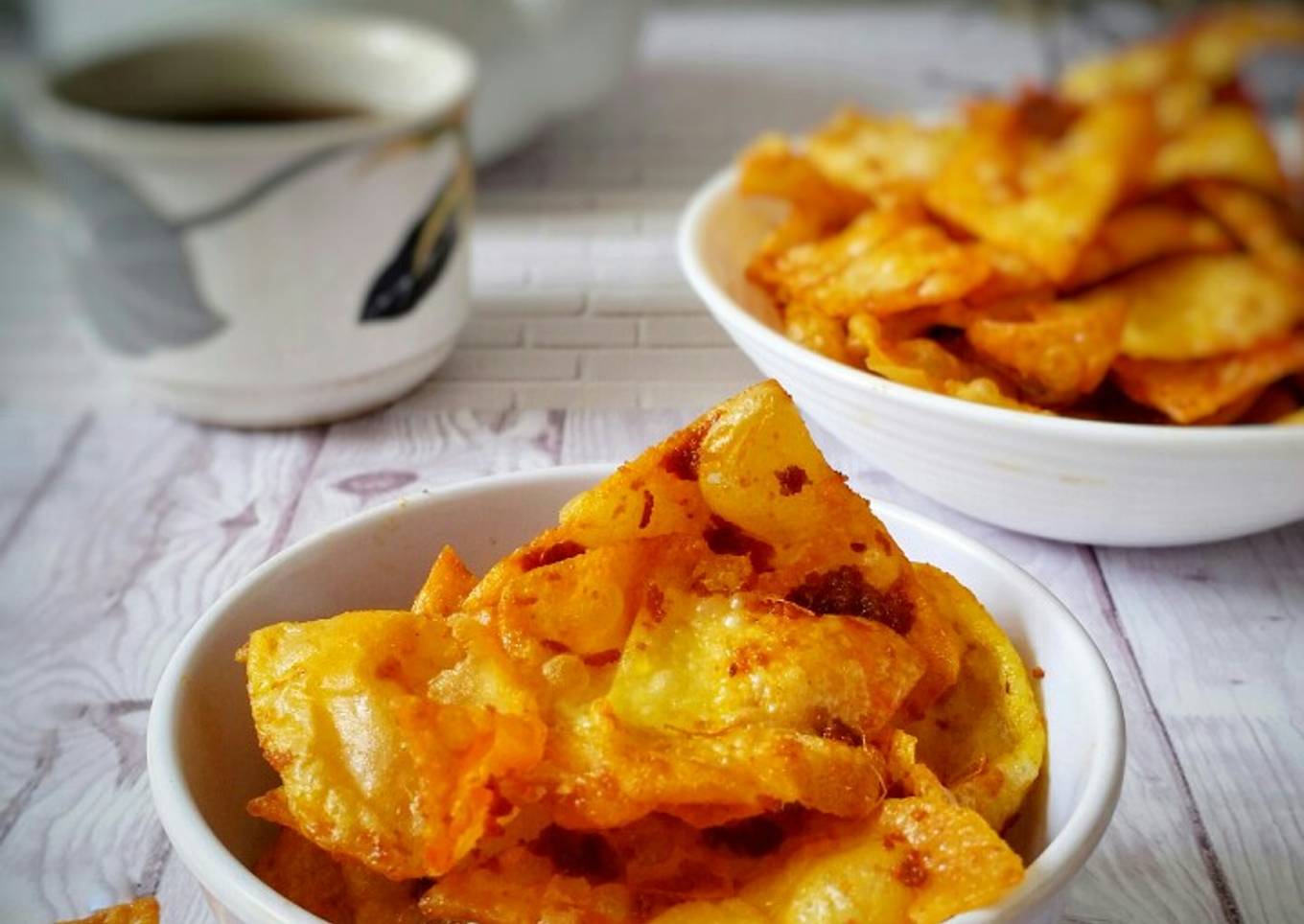 - Dalam wajan, masukkan santan kental, garam, bahan b dan c. Masak dengan api kecil hingga bumbu mengering, matikan kompor. Campur keripik telur dengan bumbu, simpan dalam wadah tertutup.