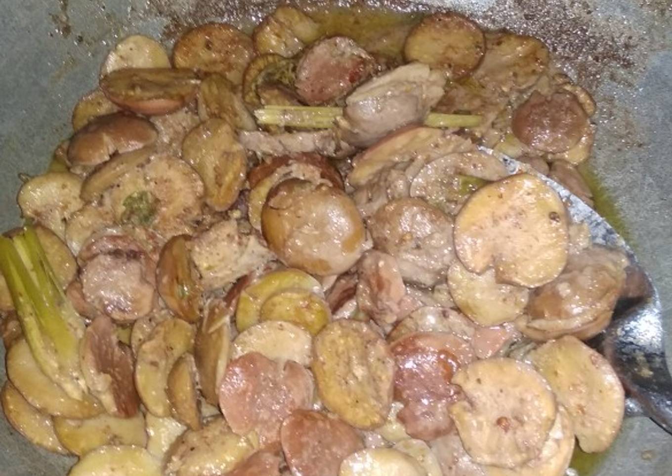 - Haluskan bumbu (bawang merah, bawang putih, cabai rawit, cabai kriting, ketumbar, merica, kemiri, pala, garam, penyedap rasa)