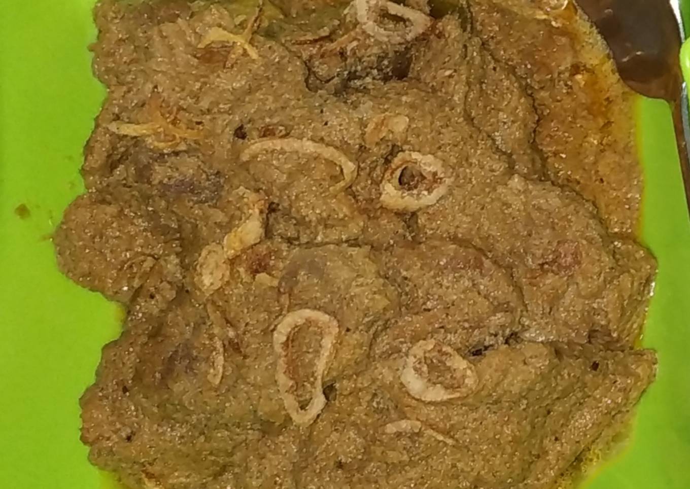 - Kalau matengnya kurang dan santan sdh mengental, boleh tambahkan air secukupnya. Dan tunggu daging mateng sempurnah. Sajikan dengan taburan bawang goreng 😉😉
