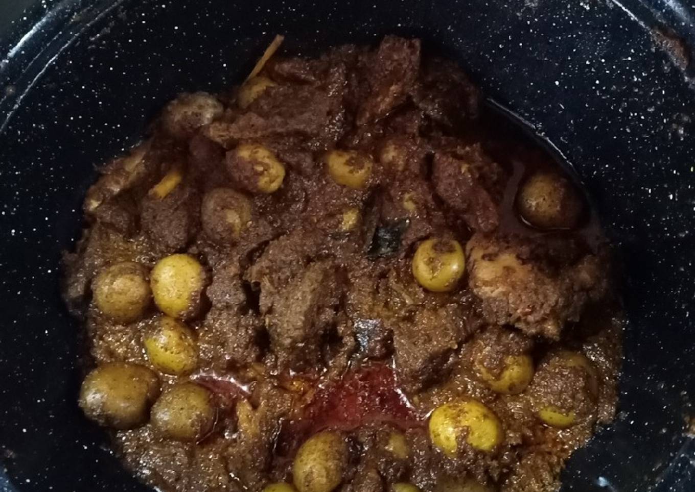 - Masak terus hingga kentang dan daging sapi lunak..